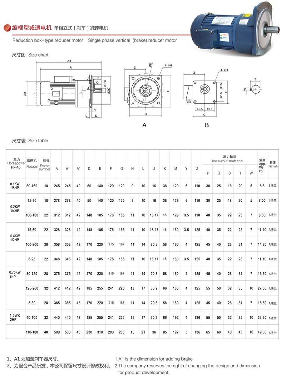 缩减型减速电机(单相卧式(刹车)减速电机)